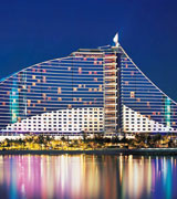 我们常说的迪拜帆船酒店,它的全称叫阿拉伯塔酒店,因它的形状像船帆,因此而得名迪拜帆船酒店,也叫迪美亚帆船酒店。 由于我国和阿联酋国是互免签证的国家,因此我们也省去了很多入境手续,入住酒店也很简单,五哥用我