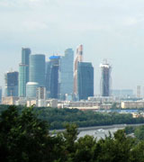 麻雀山,以前叫列宁山。 这里是莫斯科的制高点,有一座观景台,可以俯瞰莫斯科市区 整个莫斯科处在大片的森林里,具有油画般的质感,显得静谧而幽深。 上图中心白色楼体,上方有棕黄色金属的最高的建筑物 是国家科学院,