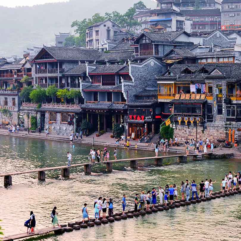 后 BUS 赴凤凰古城(约 2 小时左右),晚上夜游"中国最美的小城"之誉的【凤凰古城】(凤凰古