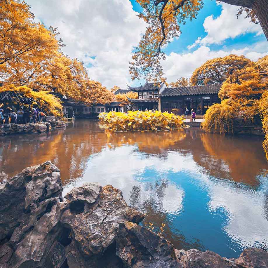v 中餐后乘车前往“中国园林之城”“人间天堂”、“东方威尼斯”、“东方水城”—苏州(车程约1.5小时)