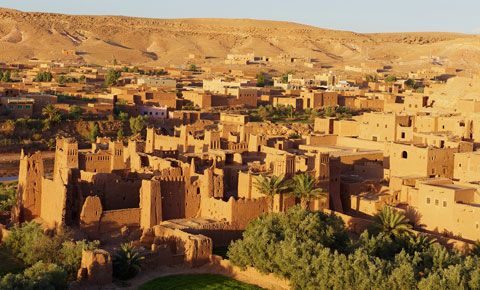 上午:早餐后,乘车前往 瓦尔扎扎特,沿途经过漫长的盘山路,穿越海拔 2200 米的一个山口,汽车盘旋在山谷和峭壁之间,一派自然风光,尽收眼底!登上靠近河谷的阿伊特本哈杜筑垒村的一个山丘,{注意如果河谷突然涨水,停止拍照},该城堡保存的异常完好,于 1987 年被联合国教科文组织列为世界遗产,是最美古旧村落,古城利用了摩洛哥特有的赤土泥砖建成,让人完全体验摩洛哥的红色魅力。