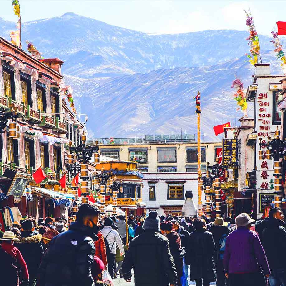 八廓街(大昭寺广场)八角街又名八廓街,是围绕大昭寺修建的一条拉萨最繁华的商业街。街道以大昭寺为中心,西接藏医院大楼,南临沿河东路,北至幸福东路,东连拉萨医院河林廓东路。到拉萨的人没有不知道八角街的。但提到"八廓街",知道的人就少多了。其实,八廓街是八角街的正确称呼。汇聚了来自世界各地的朝圣者,街两旁店铺林立摊点遍布,是拉萨著名的淘宝天堂(大宗商品请注意辨别真伪,低值商品仅作纪念品留念)。