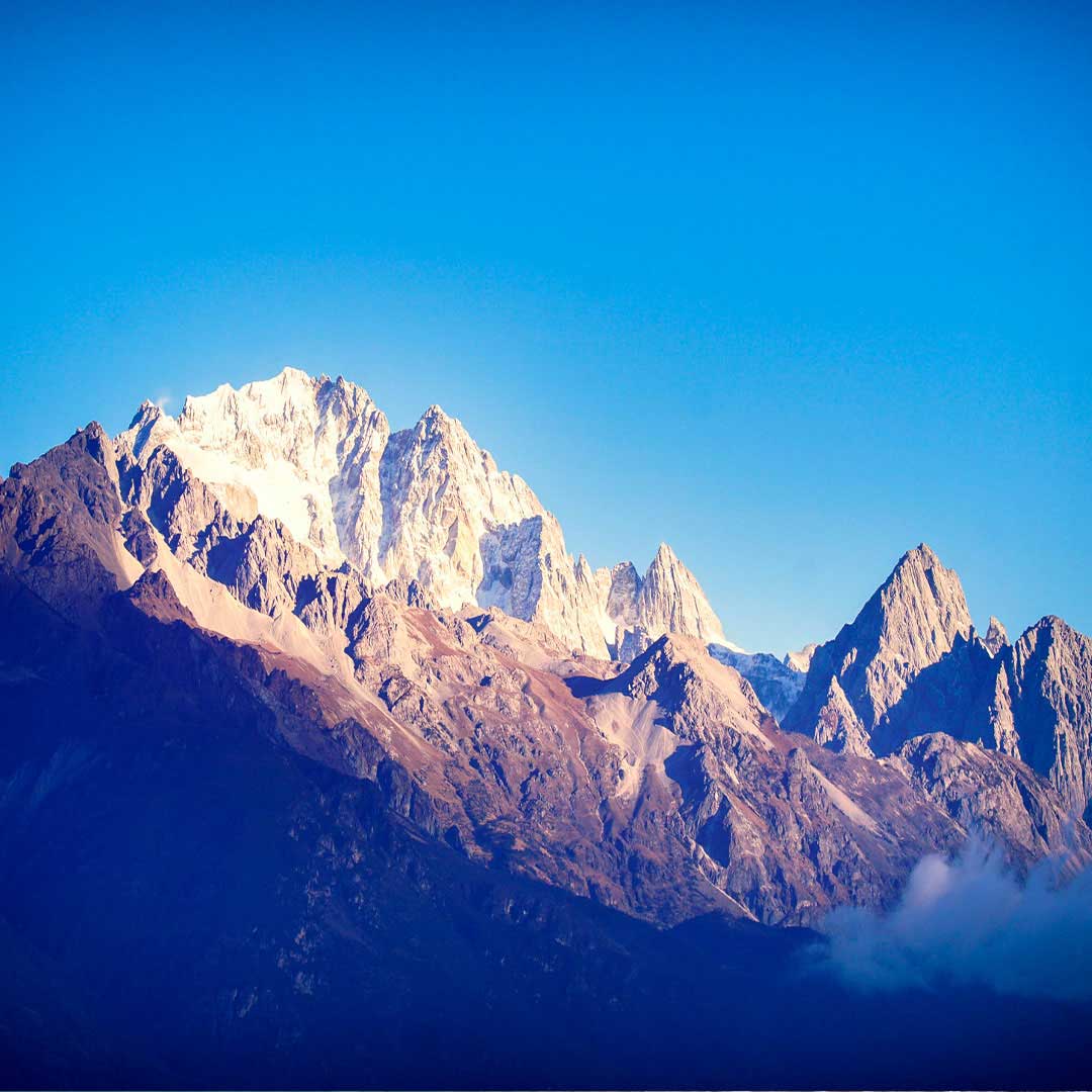 ● 随后乘车前往游览 5A 级景区【玉龙雪山风景区】乘坐【玉龙雪山大索道】(已含防寒服、氧气)从海拔3000 米的草甸出发,穿越高大挺拔的各种松林杉树,到达 4506 米高的雪山冰川公园,欣赏大自然恩赐的美景。随后游【蓝月谷】(已含电瓶车)
